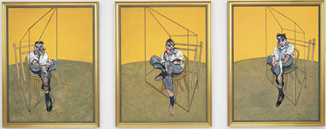 The triptych masterpiece depicts Bacon’s close friend and fellow artist, Lucian Freud (Grandson of Sigmund Freud) whose own work was greatly influenced by Bacon. “An undeniable icon of twentieth century art, the masterpiece triptych Three Studies of Lucian Freud (1969) marks the epic culmination of Francis Bacon’s relationship with fellow painter and chronicler of the human condition, Lucian Freud. Glowing in a palette of sunshine yellow and carried out in Bacon’s celebrated triptych format, the towering, life-size painting pulses with vitality. With each masterful sweep of the brush, Bacon has animated his friend, Freud being seen to restlessly reposition himself, pivot his raised foot, kneed his hands in his lap and rotate his head from canvas to canvas. Reincarnated in paint, we are invited to get up close and personal with Freud.” Christie’s.