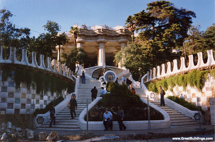 Casa Mila,  Barcelona, Spain, 1905 to 1910 Park Guell,  at Montana Pelada, Barcelona, Spain, 1900 to 1914. Image courtesy  http://www.greatbuildings.com/