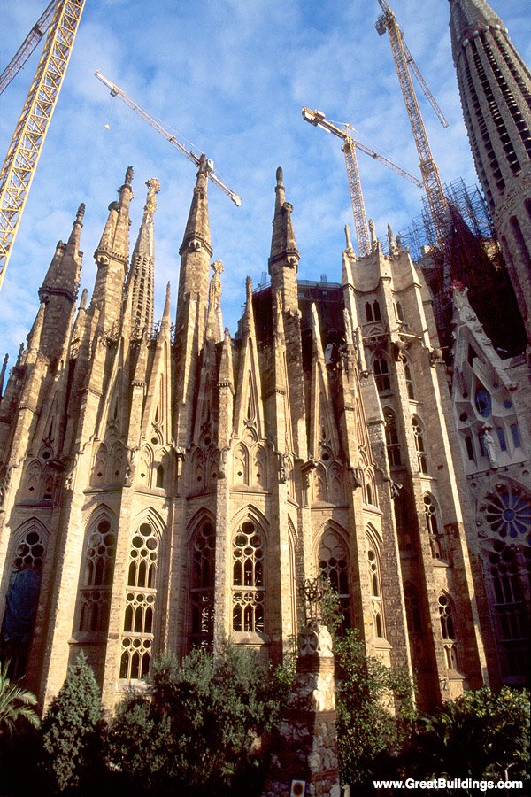 Sagrada Familia, Barcelona, Spain, 1882 to 1926. Image courtesy  http://www.greatbuildings.com/