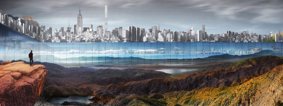 Yitan Sun and Jianshi Wu are two American architects who have taken Central Park and completely turned it upside down. This dynamic duo entered their design entitled “New York Horizon” to the eVolo Skyscraper Competition, and won first place. The future of New York isn’t exactly what you would see in an episode of Futurama or Doctor Who, but some of it gets pretty close. For starters, they would put up a glass wall a thousand feet high around the perimeter of the park. The design also calls for a restructuring of the park’s landscape, with the creation of valleys and canyons and hills and lakes. The wall would be made out of reflective glass to create the feeling of an enormous natural area enclosed within a densely populated metropolitan area.